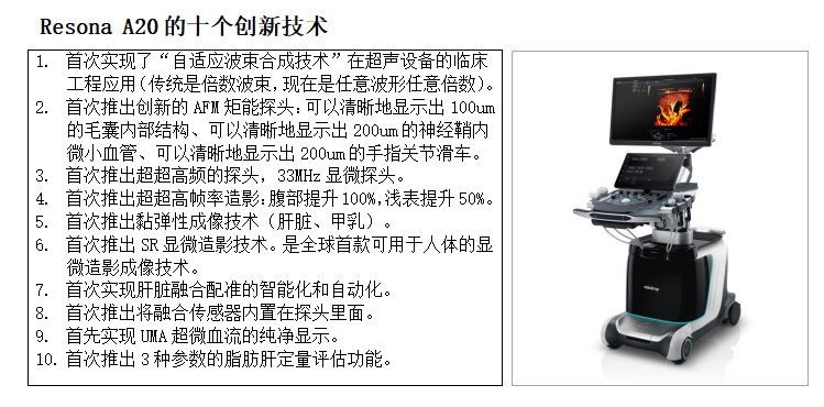 迈瑞昆仑Resona A20,研发时间长达8年,是国内首款超高端全身彩超,在各个方面都取得了革命性的突破。