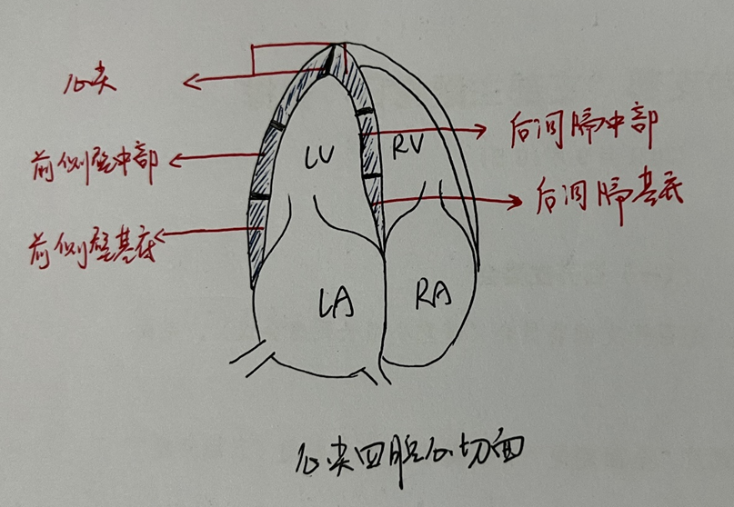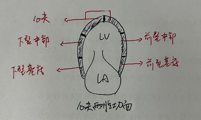 心尖二腔心观察左室三个水平前壁、下壁节段