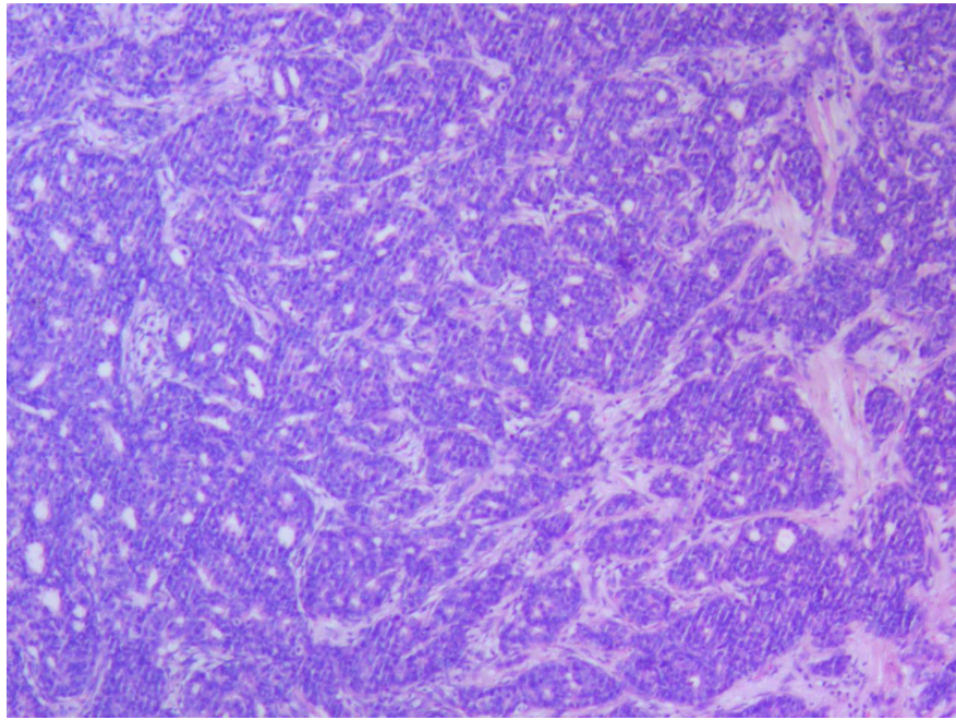 而女性乳腺癌的发病年龄则成双峰表现,高峰年龄分别为 52 岁和 71 岁。MBC 最常见的病理类型是浸润性导管癌(Invasive ductal carcinoma ,IDC),其原因与男性乳腺发育有关。
