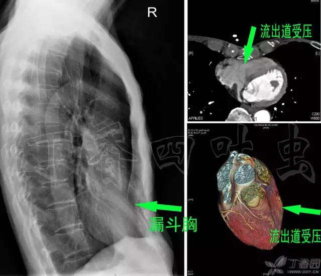 有了正确的心脏观,我们就知道如果一个人是漏斗胸,它很可能压迫到右心室流出道,而不会压迫到左心室,如图。