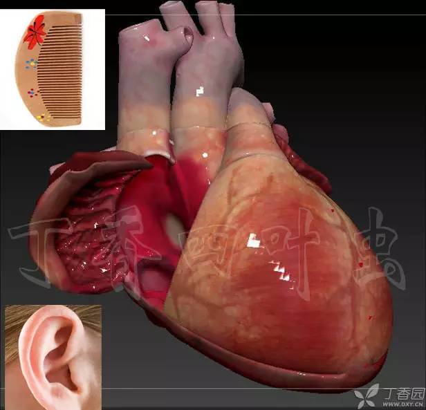 我们先把右心耳切开,往外翻大家看看右心耳切开外翻是不是更有耳朵的赶脚?耳朵里面交错纵横的这些结构叫梳状肌,为什么叫梳状肌?