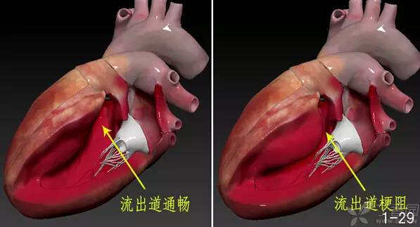 肥厚性心肌病又分梗阻型和非梗阻型,那么它为什么会梗阻?直观地看一下就知道了(图 1-29)。