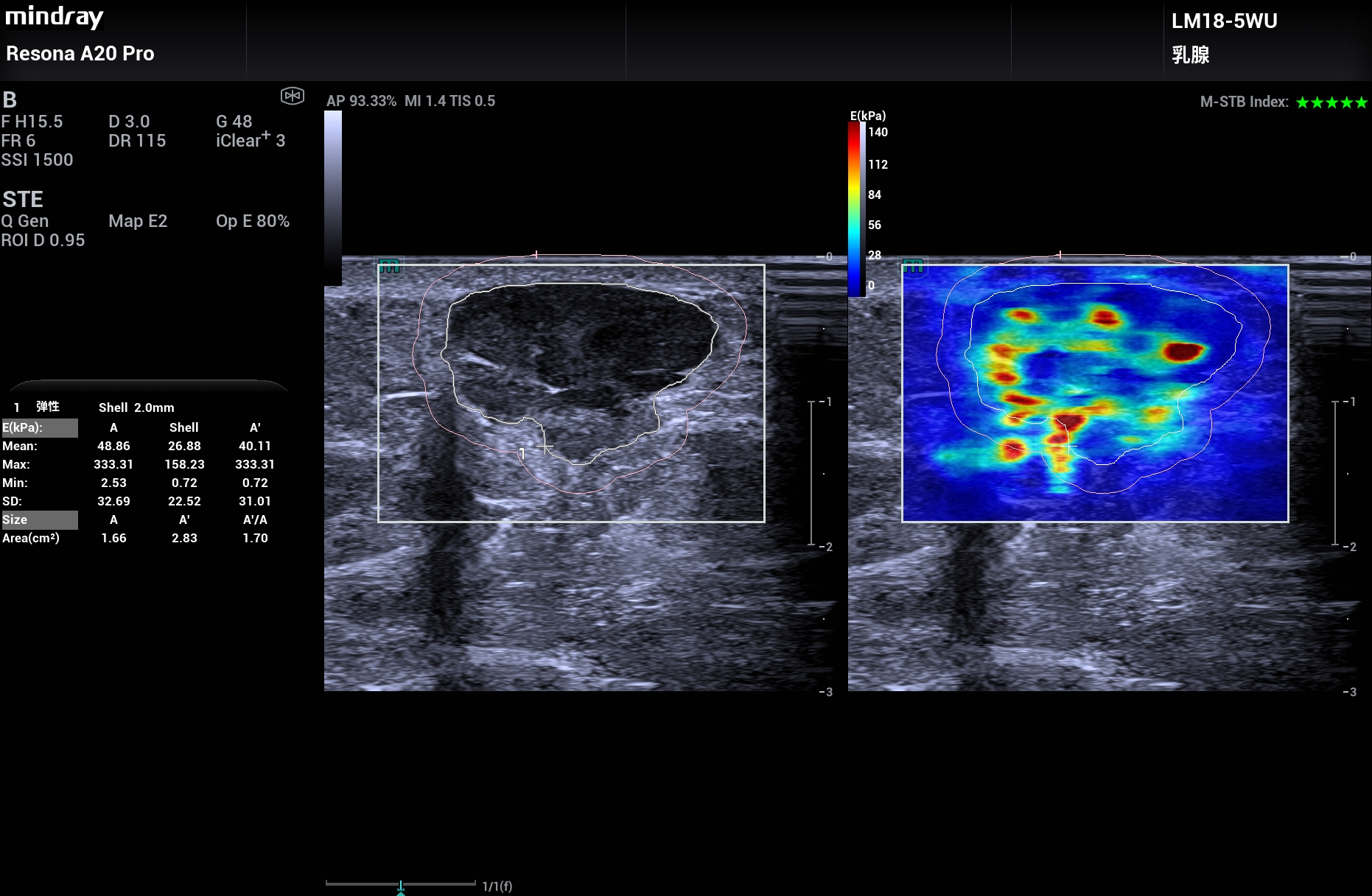 采用A20的超微血流UMA、睿瞳技术、弹性成像、造影和造影分析等高级技术。