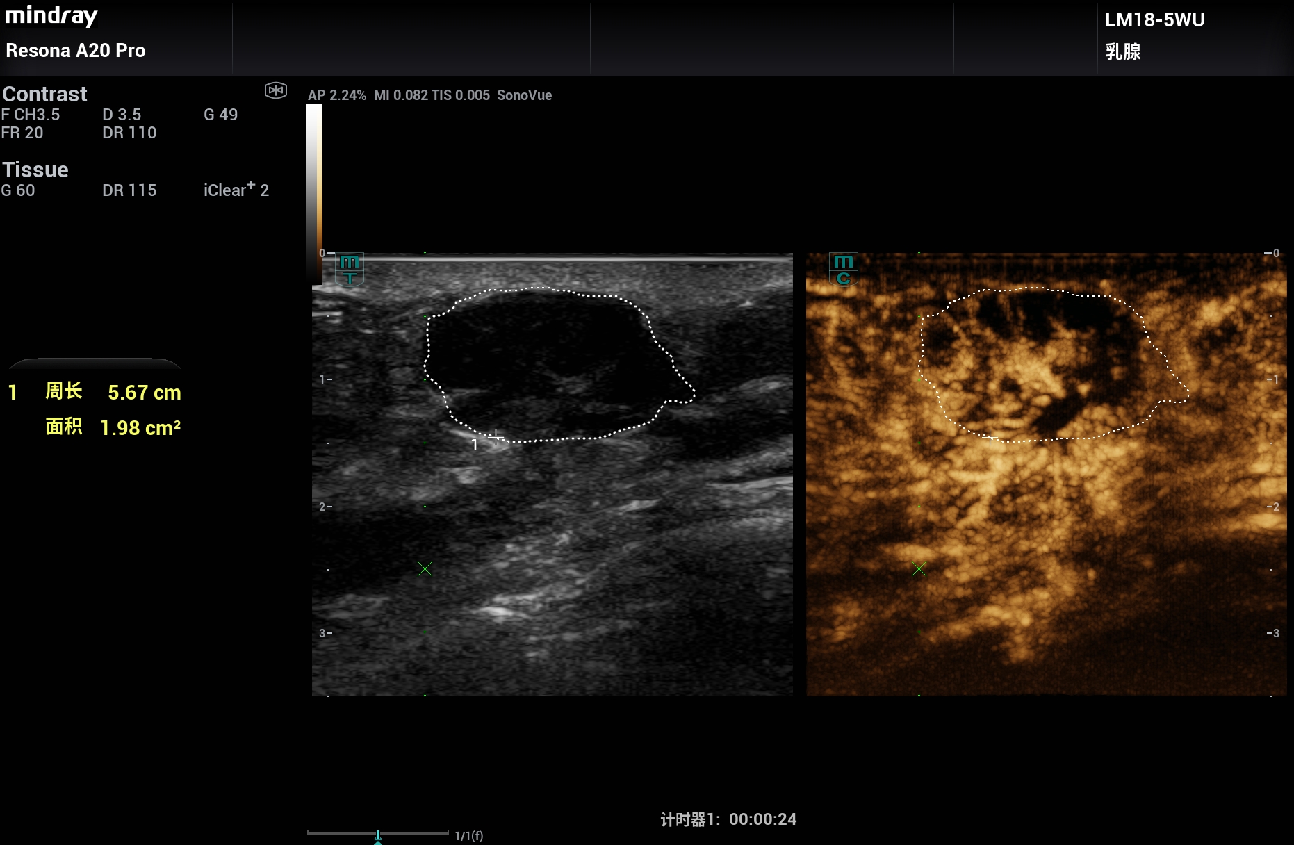 其中睿瞳技术可以观察肿瘤周围边界的炎症高回声表现。