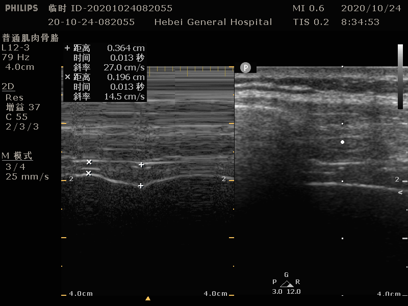 图 5 M 模式-膈肌厚度测量