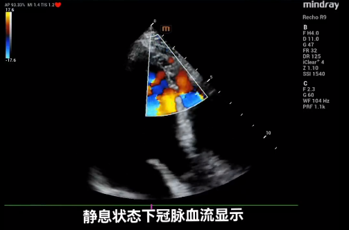 如何快速准确的打出并显示冠状动脉左前降支血流,既考验机器,也考验手法!视频中是3个病例的冠脉血流视频,我们尝试使用迈瑞Recho R9连续对5个患者进行静息状态下的冠脉血流观察,成功率达到100%,当然数据量不够,但达到指南的成功率是完全没有问题的,这给予了我们对国产心脏机很大的信心,冠脉血流的显示一直是心脏超声难点中的难点。