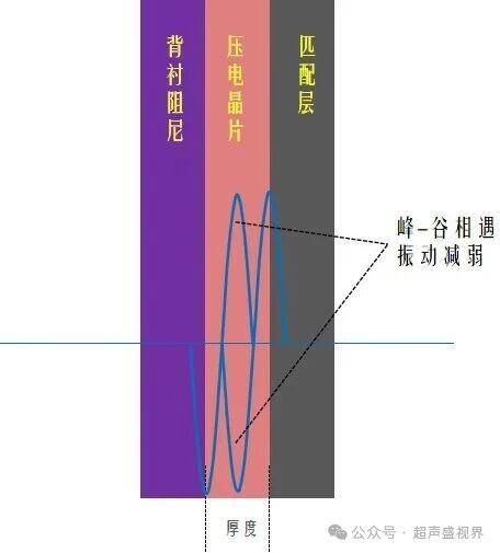 当压电元件的厚度为(λ/2)的偶数倍时,例如压电晶片的厚度等于波长,两个方向的波反相,相互抵消,振动最弱。