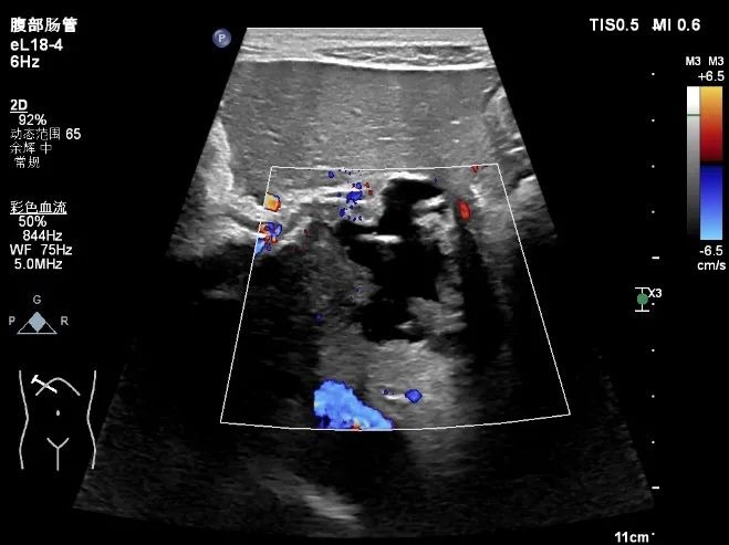 图 3 CDFI: 囊肿周边可见少许血流信号