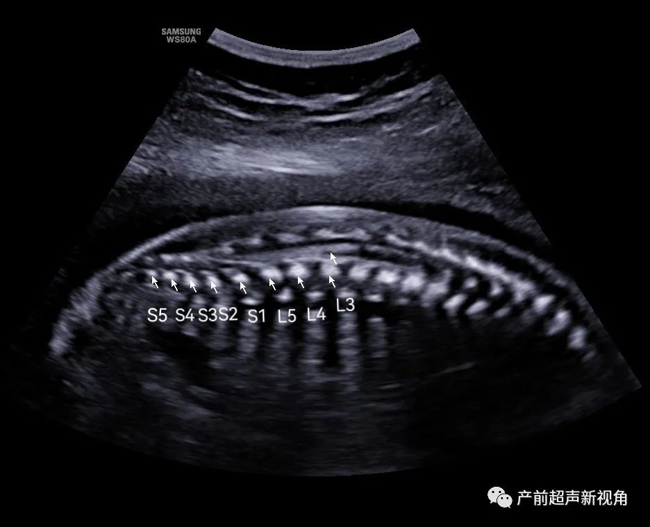 笔者推荐大家使用骶尾S5——向上数椎体法,骶尾部最后一个骨化中心的椎体倒数来初步定位脊髓圆锥位置,快速排除脊髓圆锥低置,其方法简便,不需要考虑胎儿脊柱腰骶段的曲度,可提高中孕期胎儿畸形筛查的工作效率。
