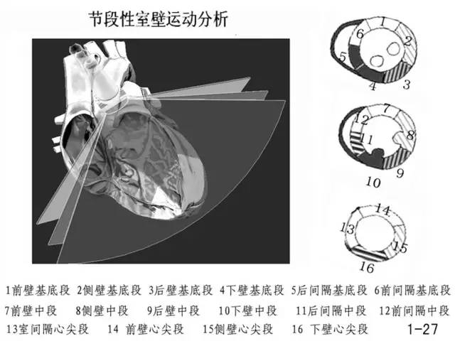 2000 年美国超声心动图协会推荐左室壁 16 分法,这种分法最符合临床特点与心肌供血分布,也和心电图心肌缺血定位相互呼应。就是把这个模型用超声束再切成 3 部分,但似乎出问题了。