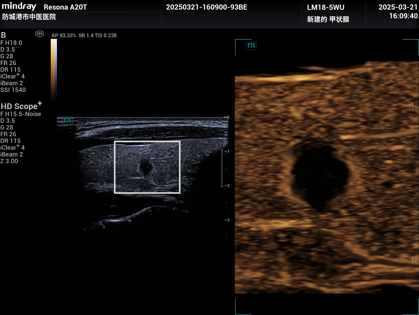 病例,甲状腺癌,超微血流,睿瞳技术,超声造影,防城港市中医院超声科,迈瑞Resona A20,2025年3月