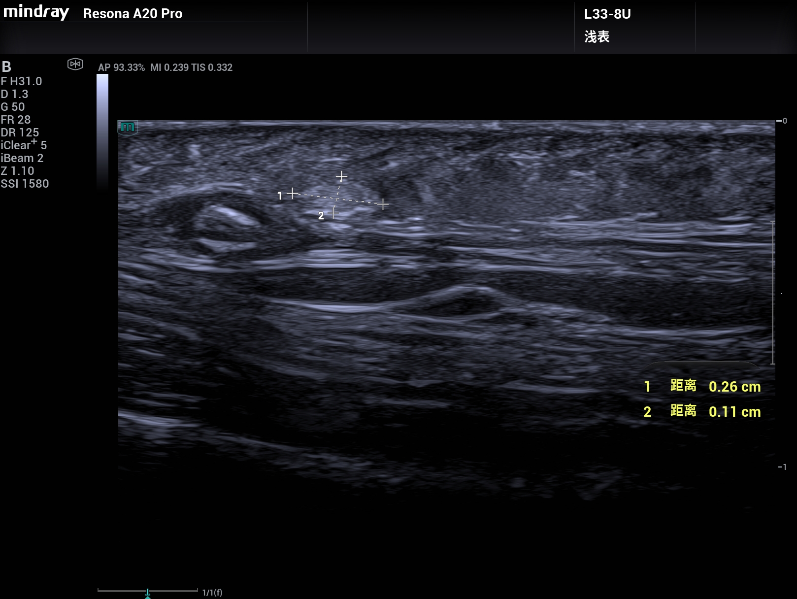 病例,33M和超微血流,头皮下1.5mm的2.6mm×1.1mm的脂肪瘤清楚显示,迈瑞Resona A20,2025年11月